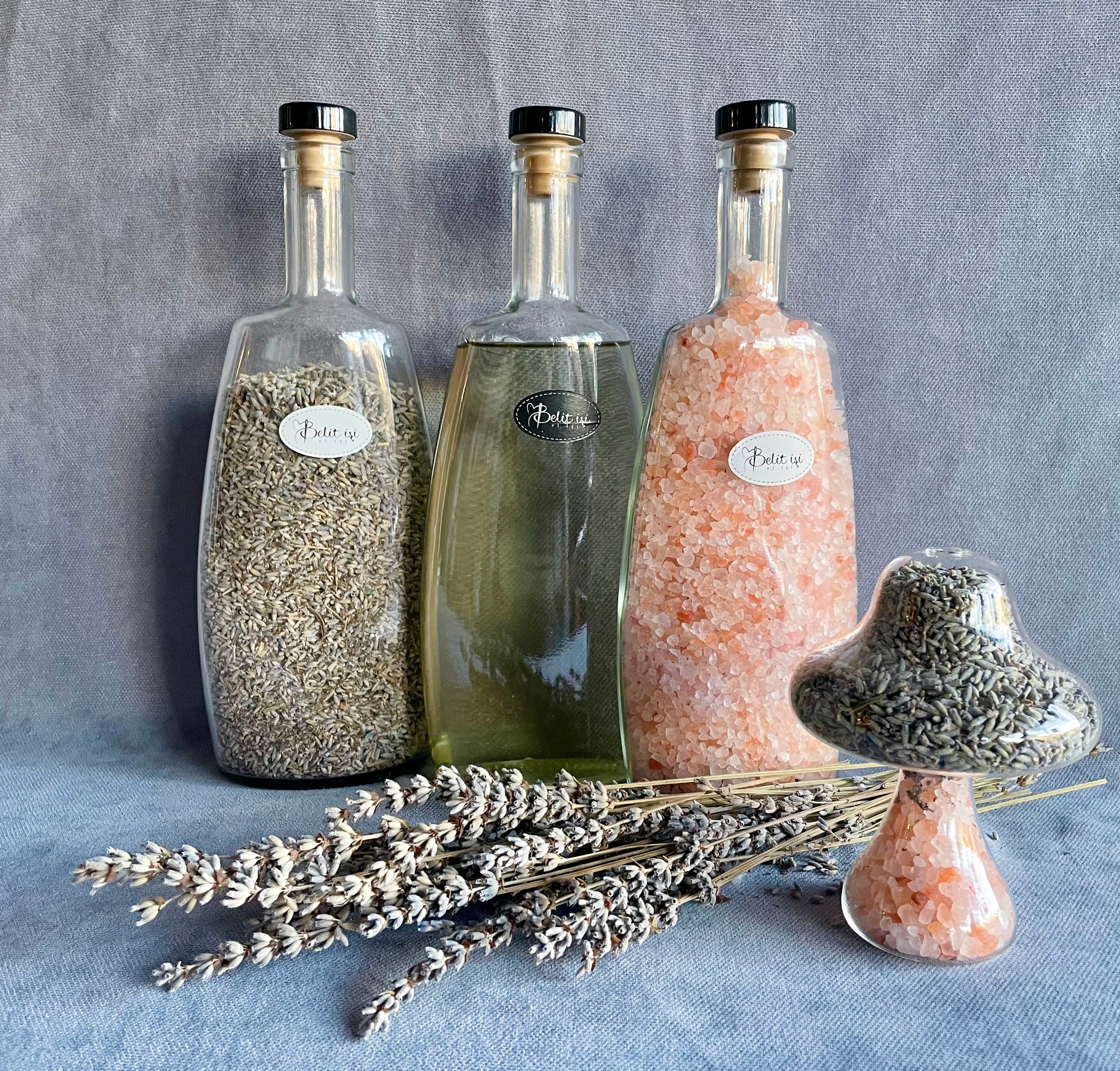 Filled with lavender seed and lavender oil soaked Himalayan salts